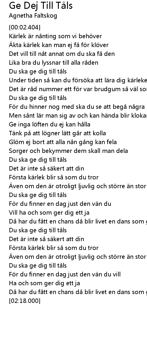 | [01:01.903] | Ge inga l ften du ej kan h lla |