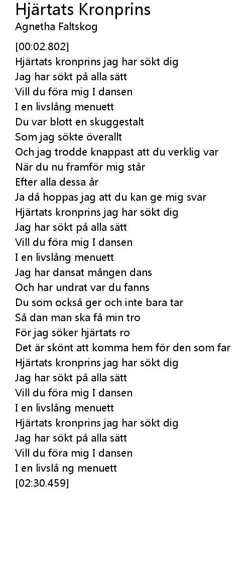 | [02:11.963] | Hjärtats kronprins jag har sökt dig |