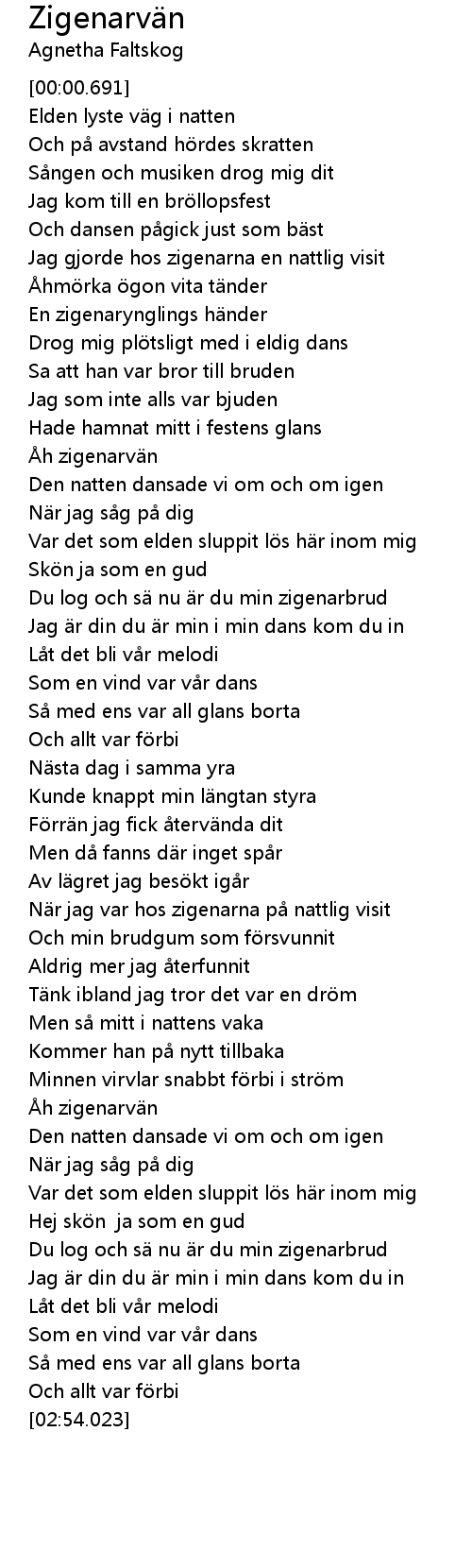 | [02:34.020] | Du log och s nu r du min zigenarbrud |