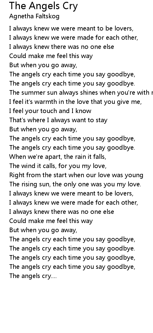 The angels cry each time you say goodbye, |