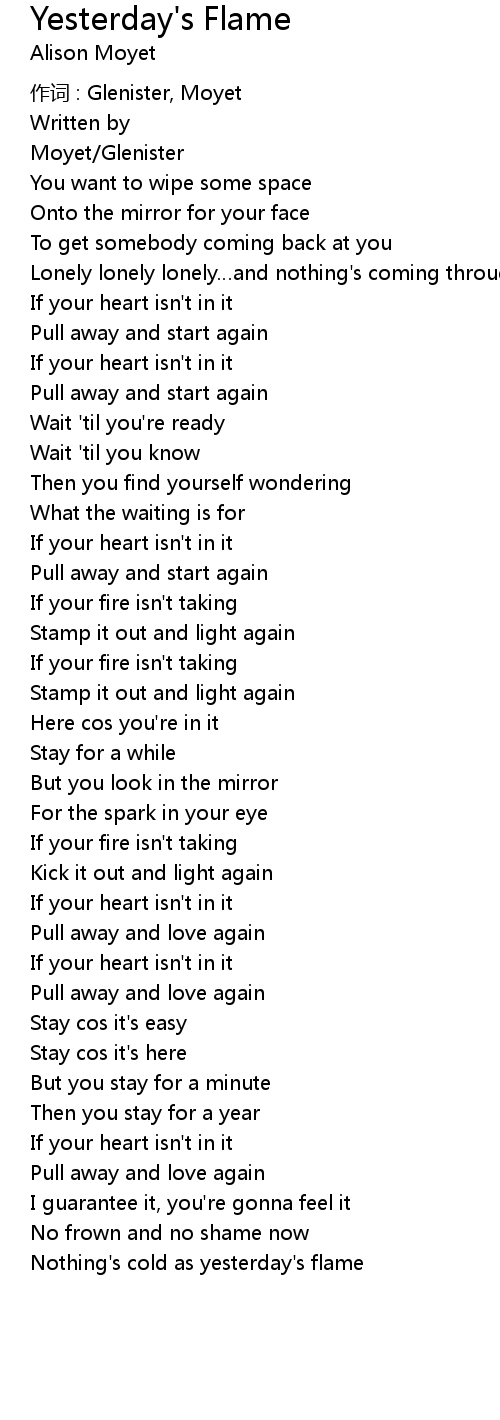 | Song | Yesterday's Flame |