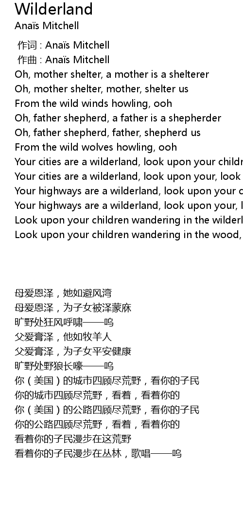 | [00:00.000] | 作词 : Anaïs Mitchell |