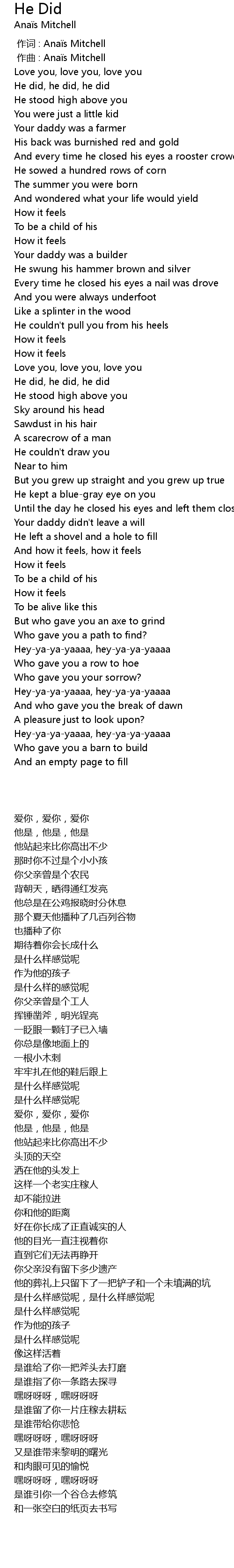 | [00:00.000] | 作词 : Anaïs Mitchell |