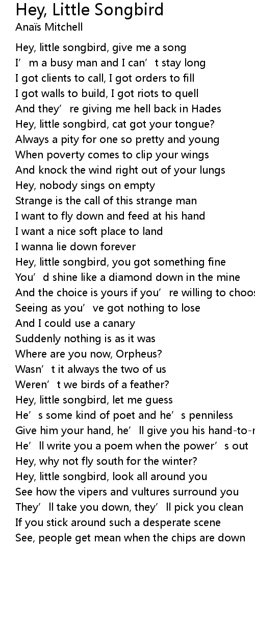 | [00:29.98] | Hey, little songbird, cat got your tongue? |