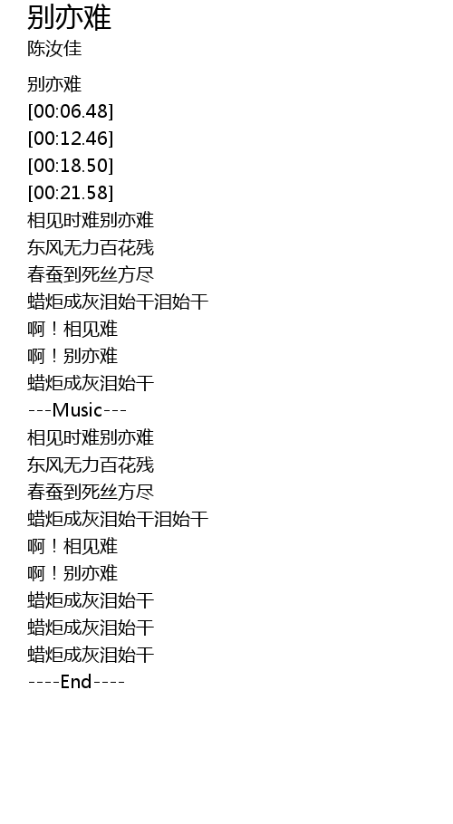 | [03:05.86] | 蜡炬成灰泪始干 |