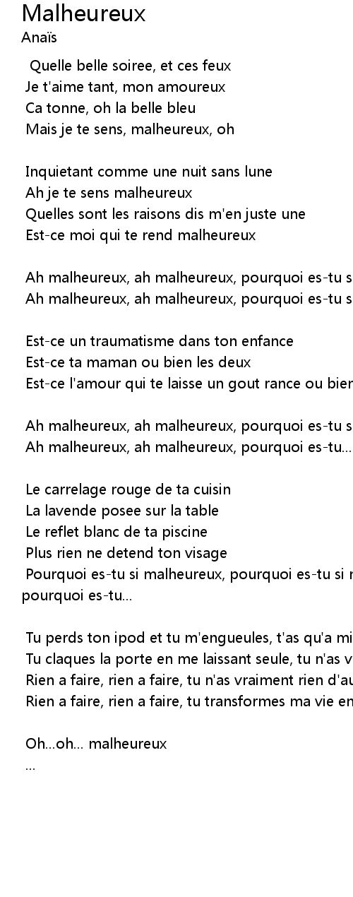 Pourquoi es-tu si malheureux, pourquoi es-tu si malheureux, pourquoi es-tu, pourquoi es-tu... |