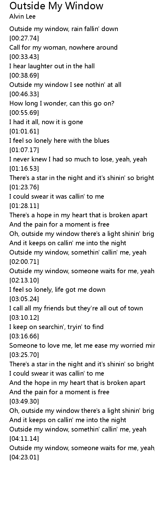 Oh, outside my window there's a light shinin' bright |