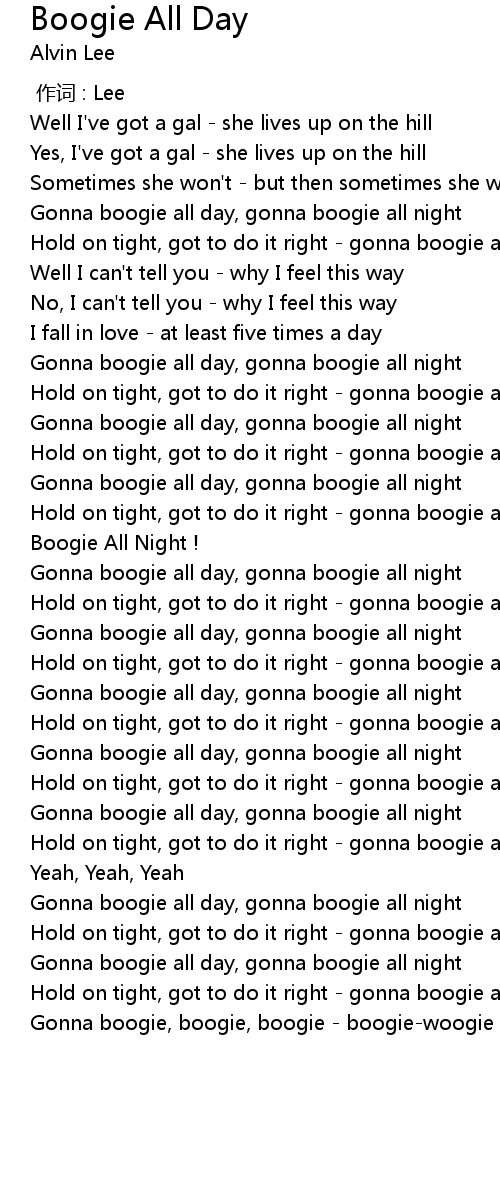 | [03:31.17] | Gonna boogie all day, gonna boogie all night |