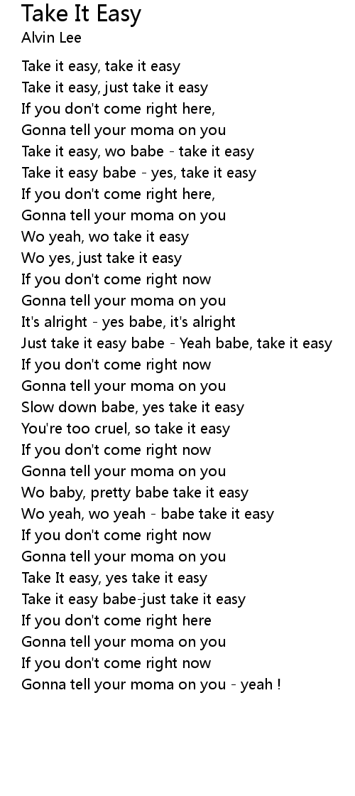 | [01:12.70] | Take it easy babe - yes, take it easy |