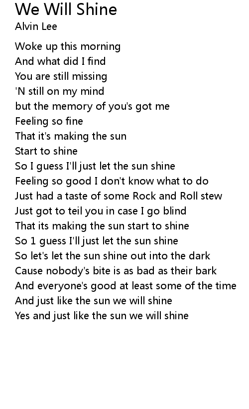 And just like the sun we will shine |