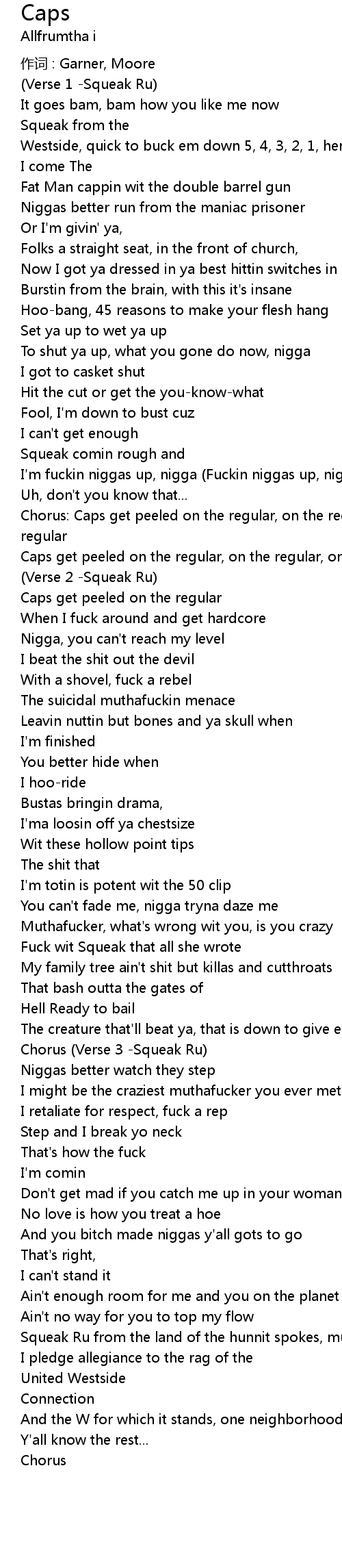 | Caps get peeled on the regular, on the regular, on the regular, on the regular Verse 2 Squeak Ru | |