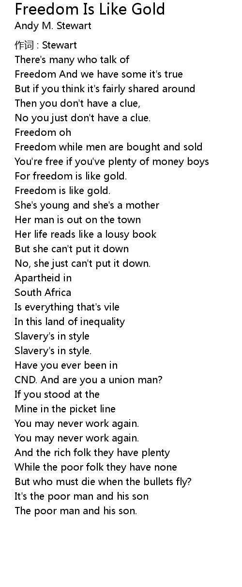 | Song | Freedom Is Like Gold |