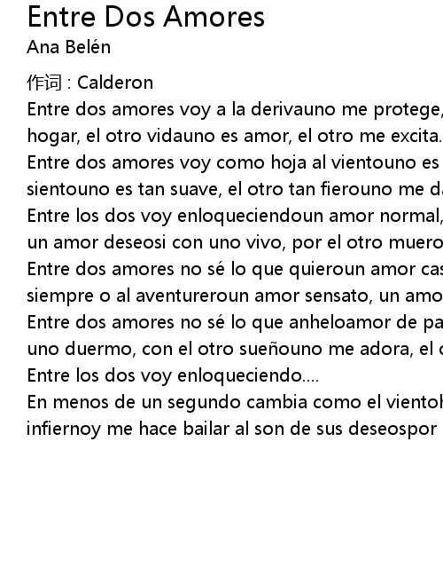 | Entre dos amores no se lo que anheloamor de palomas o un amor de fuegocon el uno duermo, con el otro sue ouno me adora, el otro es mi due o. | |