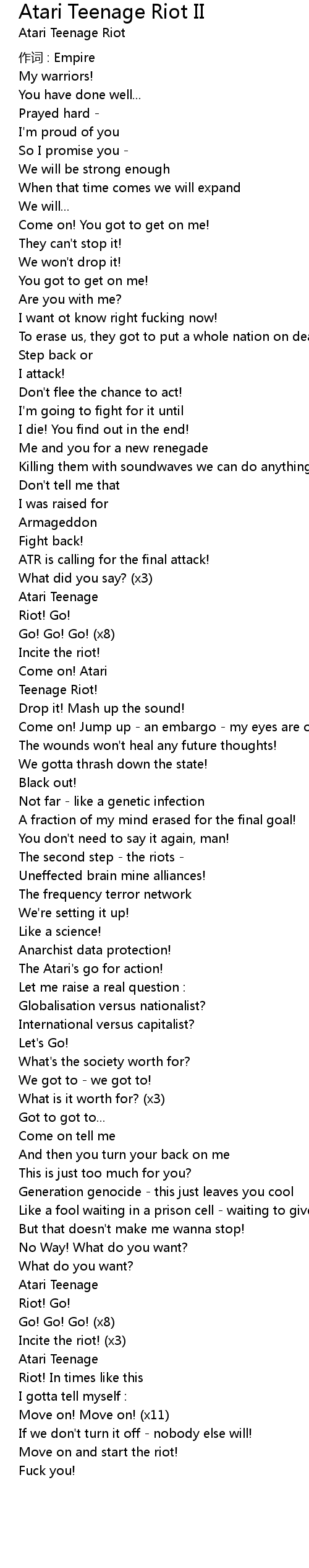 | Song | Atari Teenage Riot II |