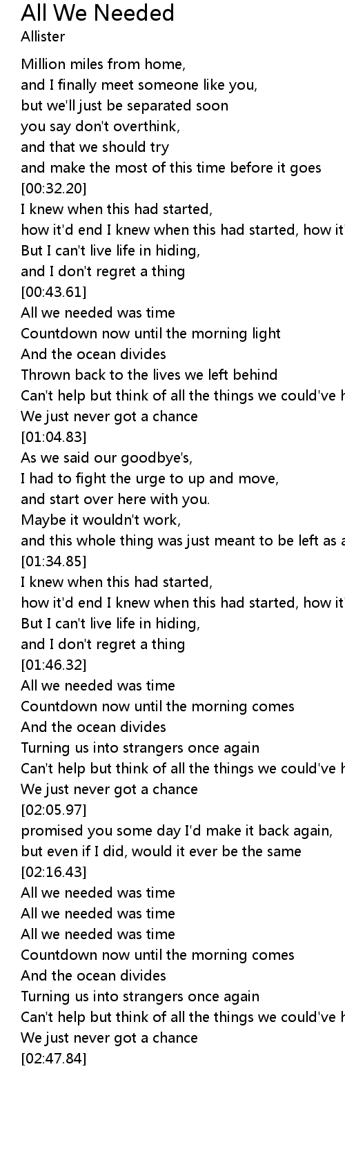 All we needed was time |