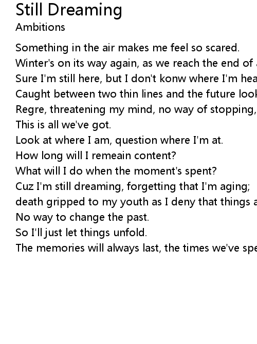 | Cuz I'm still dreaming, forgetting that I'm aging; | |