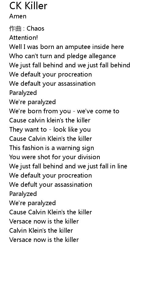 | Cause calvin klein' s the killer | |