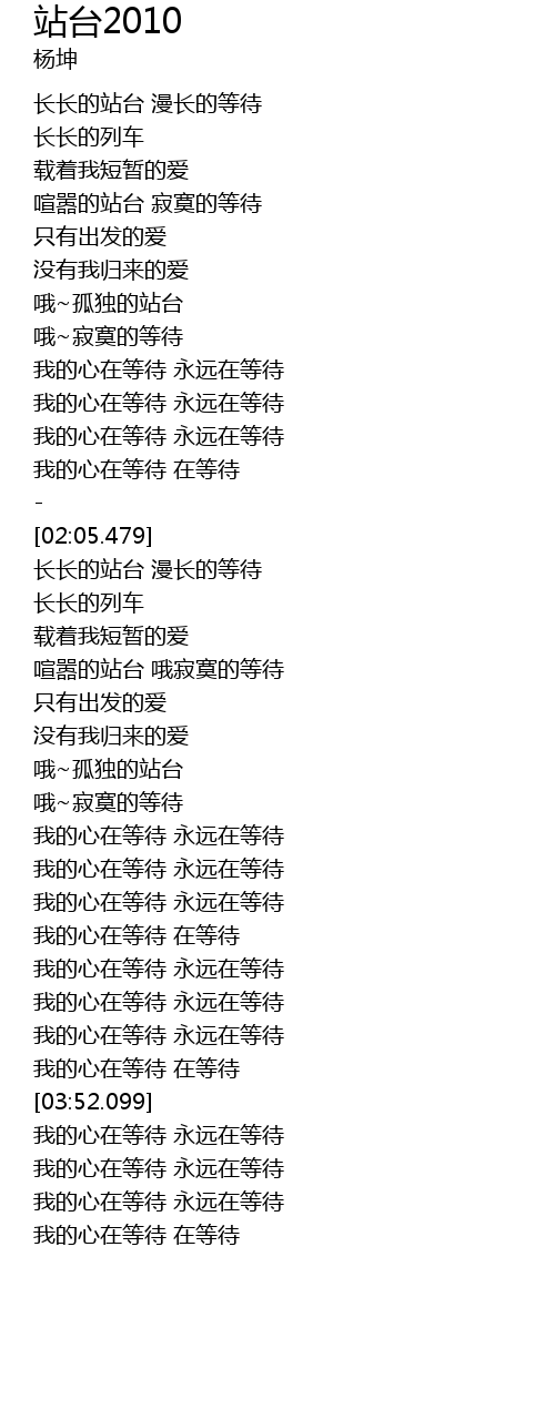 | [01:03.790] | 长长的站台 漫长的等待 |