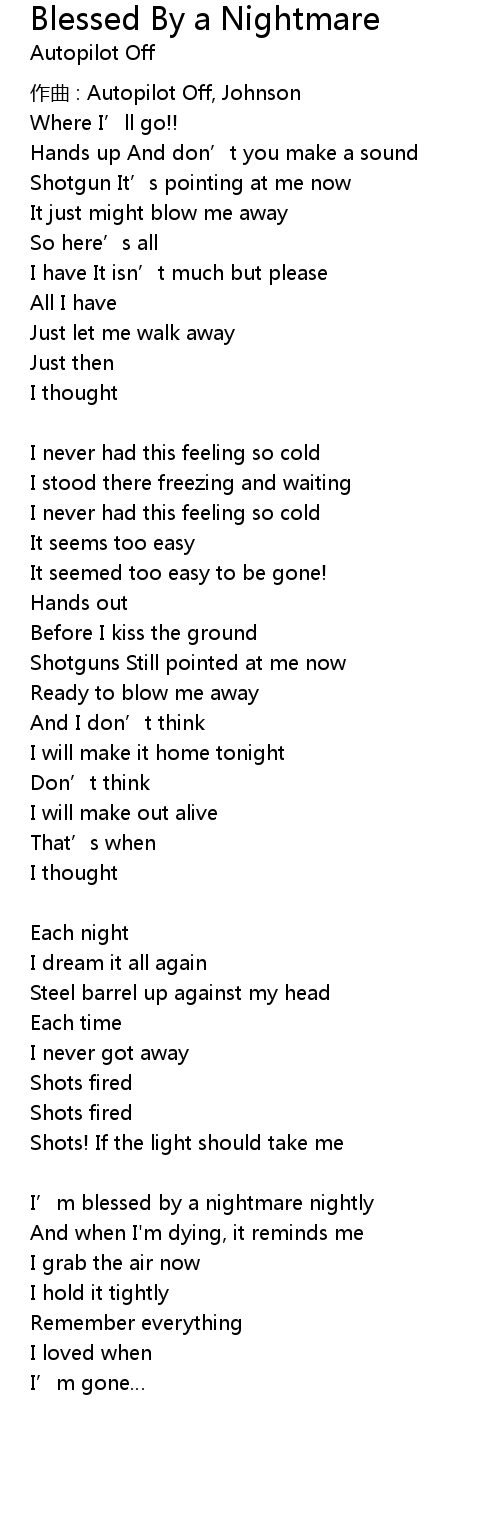 | I’m blessed by a nightmare nightly | |