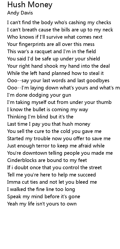 Last time I pay you that hush money |