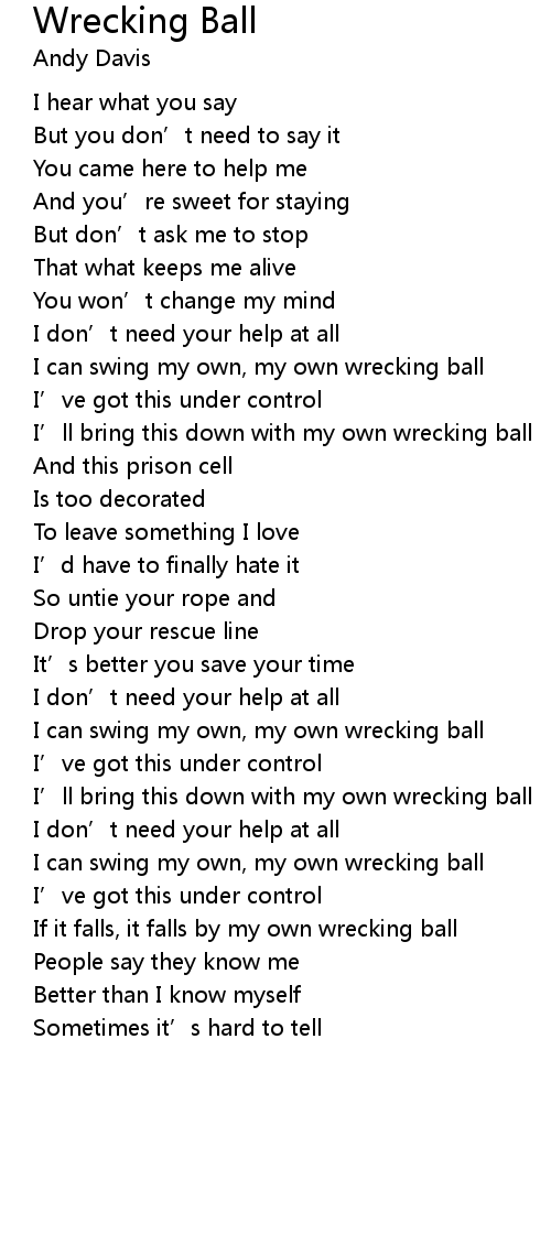 | If it falls, it falls by my own wrecking ball | |