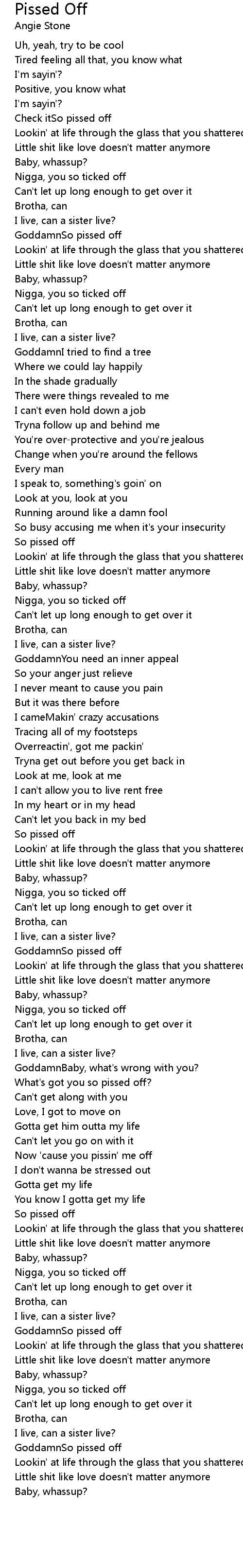 Now 'cause you pissin' me off |