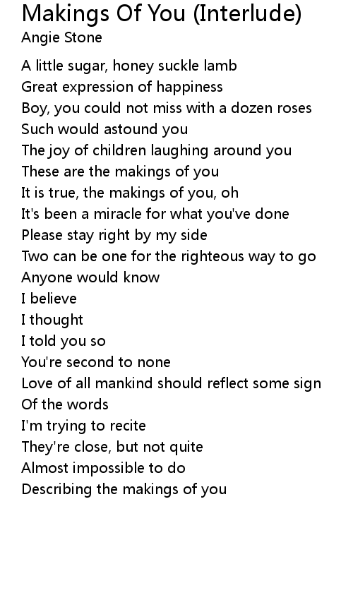 It is true, the makings of you, oh |