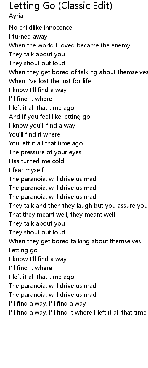 And if you feel like letting go |