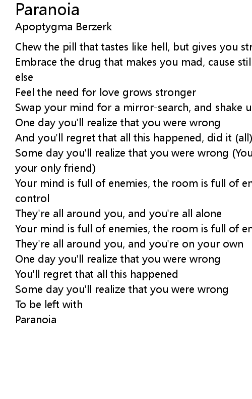 Some day you'll realize that you were wrong (You'll be) left with paranoia (,as your only friend) |