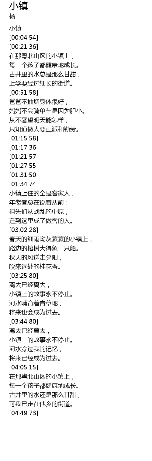 | [04:27.85] | 在那粤北山区的小镇上, |