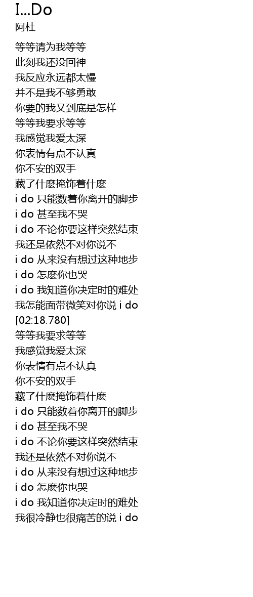 | [02:04.539] | 我怎能面带微笑对你说 i do |