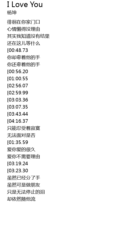 | [04:23.80][04:16.37][03:47.95][03:15.94][01:23.96] | I Love You |