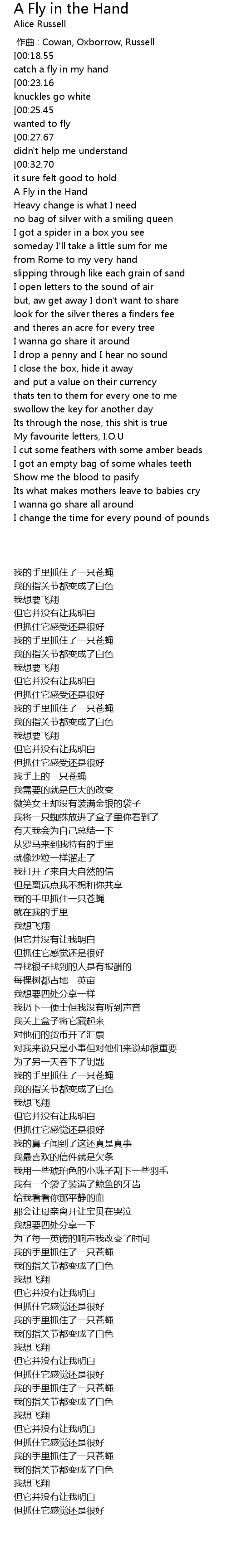 | [00:54.64] | A Fly in the Hand |
