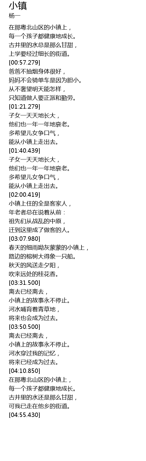 | [04:33.550] | 在那粤北山区的小镇上, |