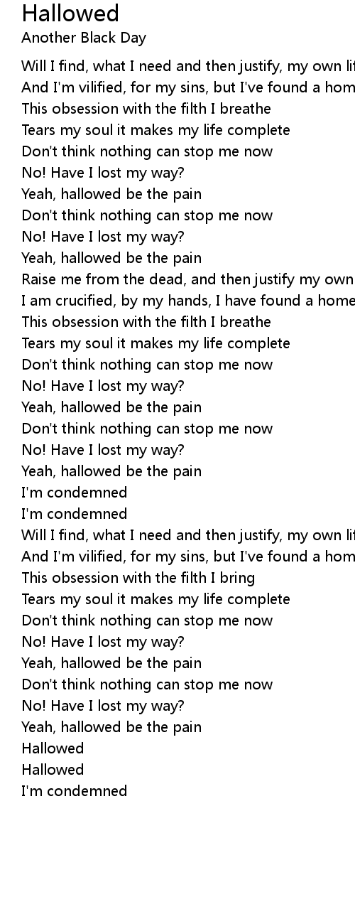 And I'm vilified, for my sins, but I've found a home, I'm condemned
