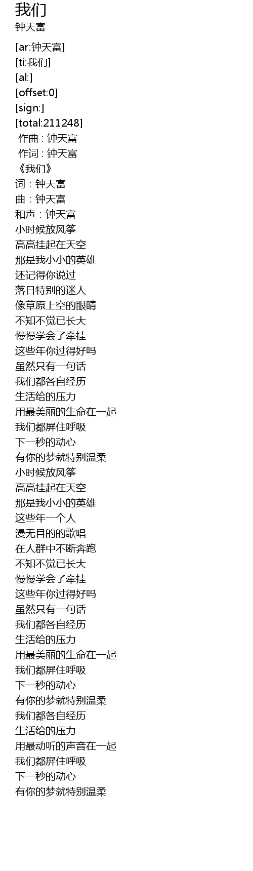 | [00:55.25] | wǒ men dōu gè zì jīng lì |