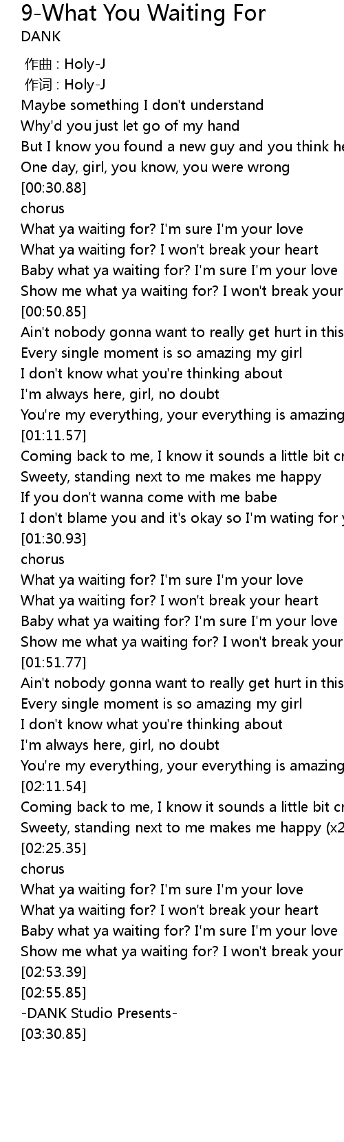 | [00:45.96] | Show me what ya waiting for? I won' t break your heart |