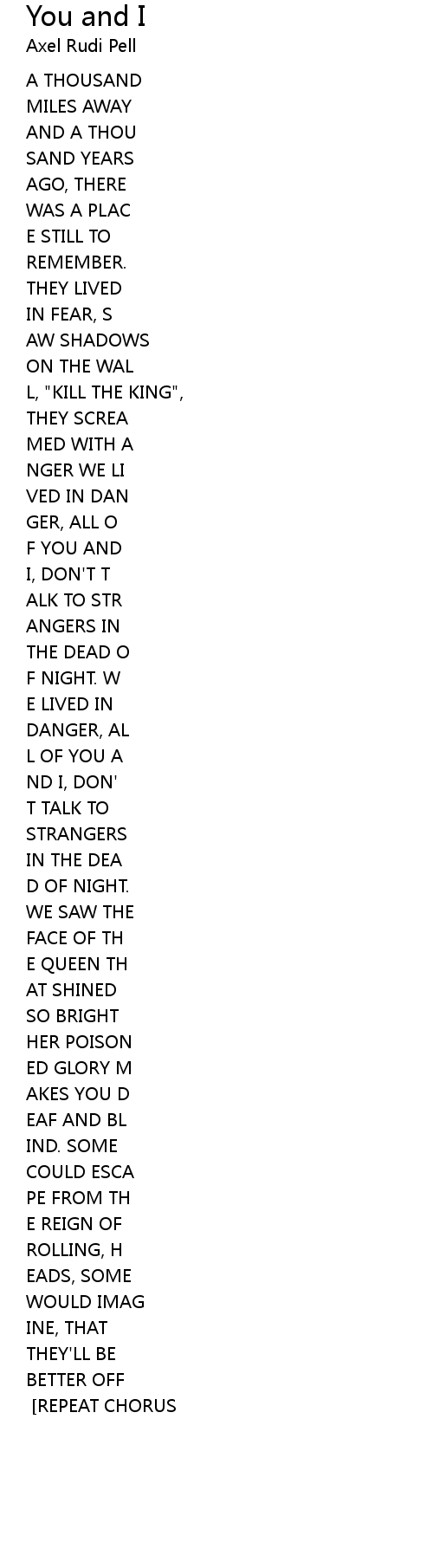 | Song | You and I |