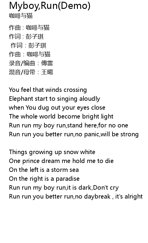 | Run run my boy run,it is dark,Don't cry | |