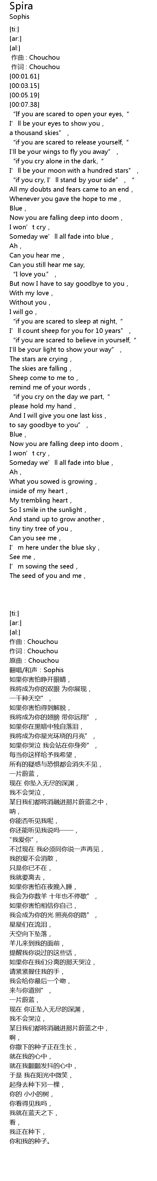 | [00:00.353] | 作词 : Chouchou |
