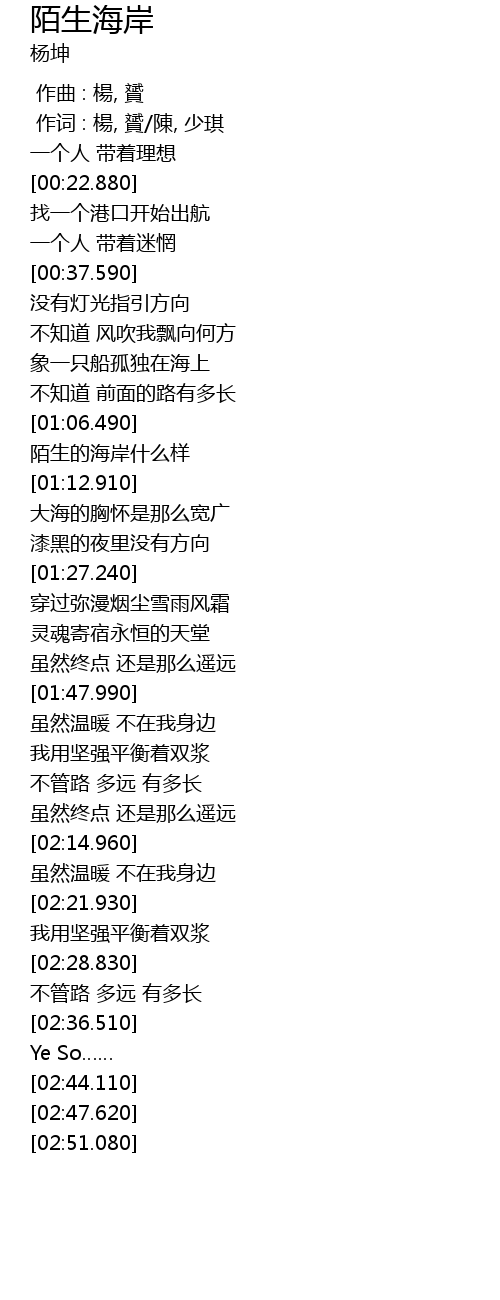 | [01:07.110] | 陌生的海岸什么样 |