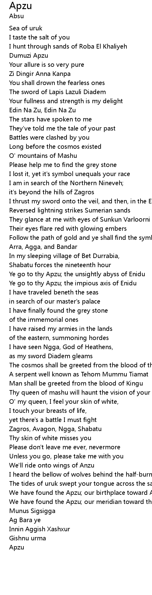 Ye go to thy Apzu; the unsightly abyss of Enidu |