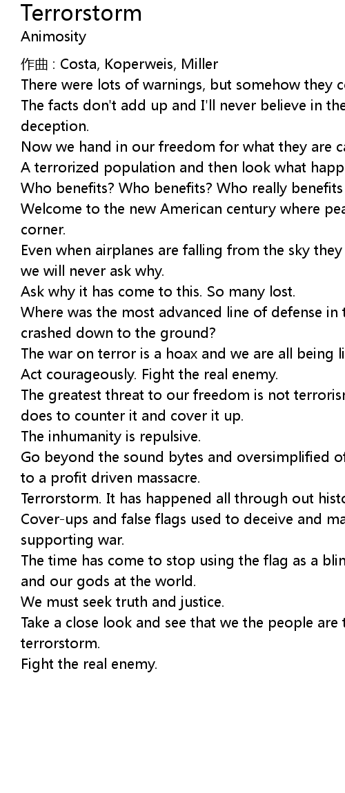 | The war on terror is a hoax and we are all being lied to. | |