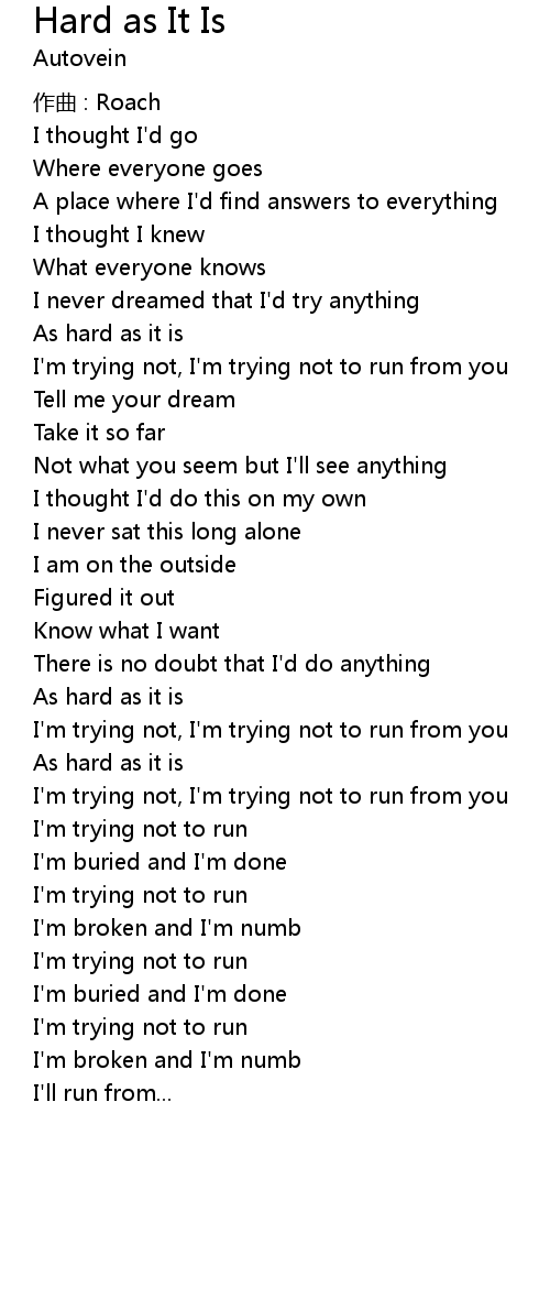 | Song | Hard as It Is |
