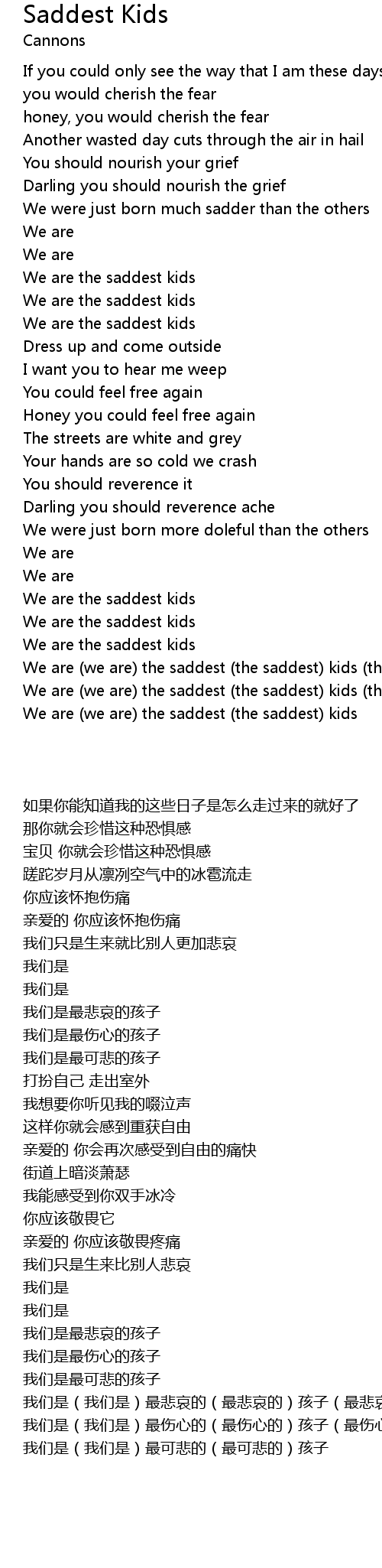 We are (we are) the saddest (the saddest) kids |