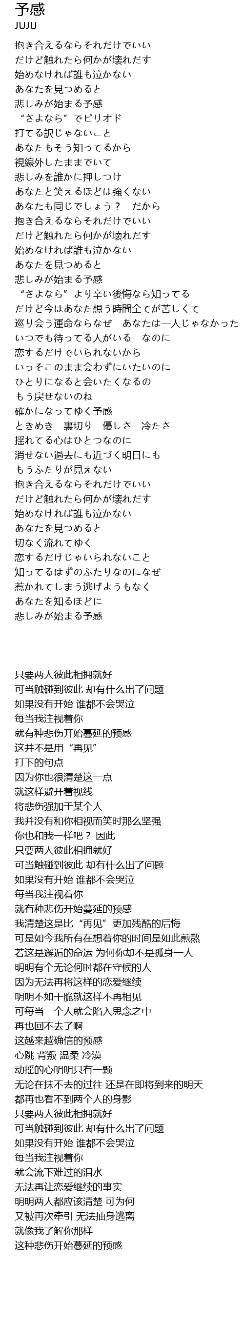 | Song | 予感 |
