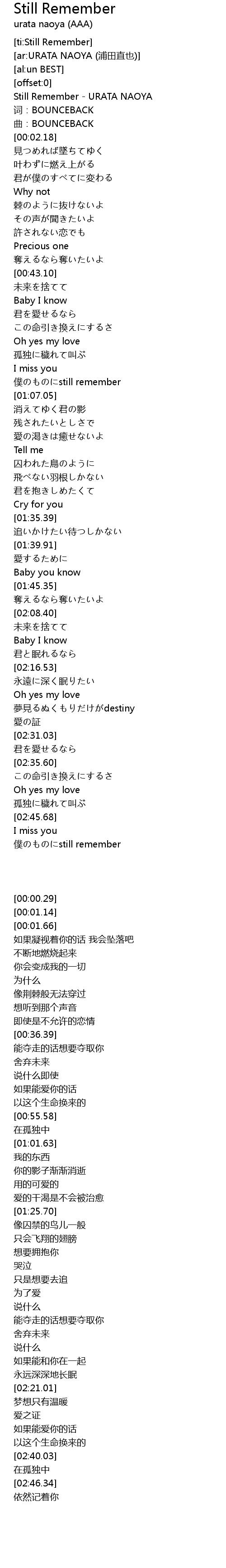 | [00:00.29] | Still Remember - URATA NAOYA |