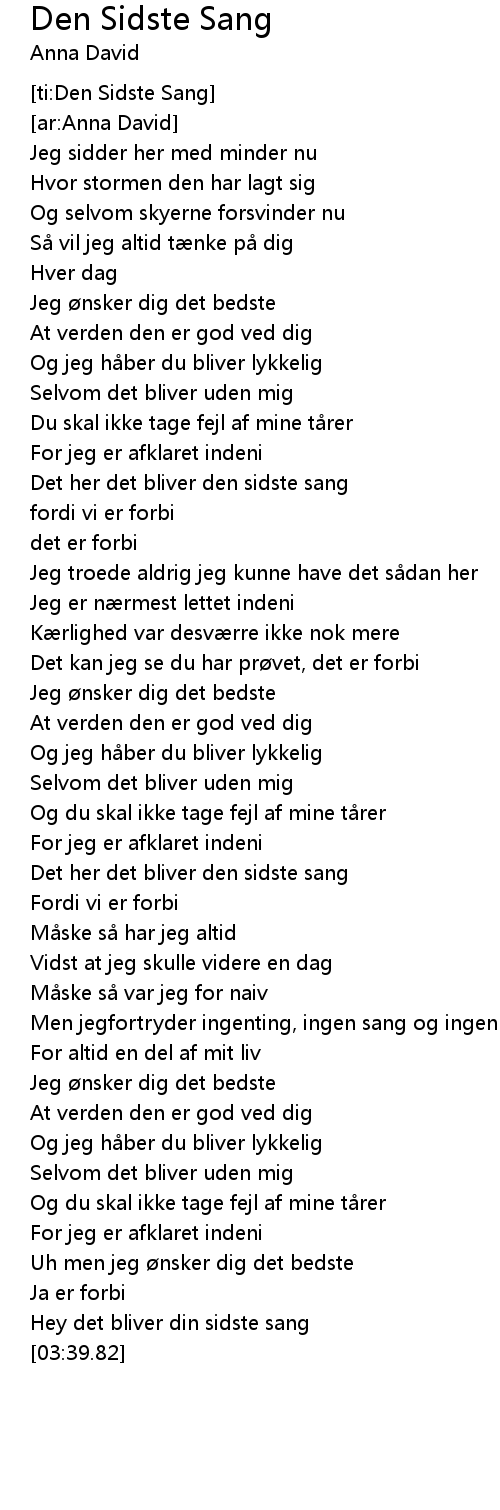 | [00:50.03] | Det her det bliver den sidste sang |
