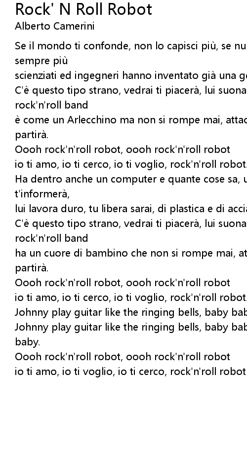 | io ti amo, io ti cerco, io ti voglio, rock' n' roll robot. | |