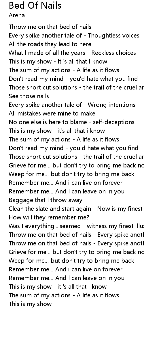 | Throw me on that bed of nails - Every spike another tale | |